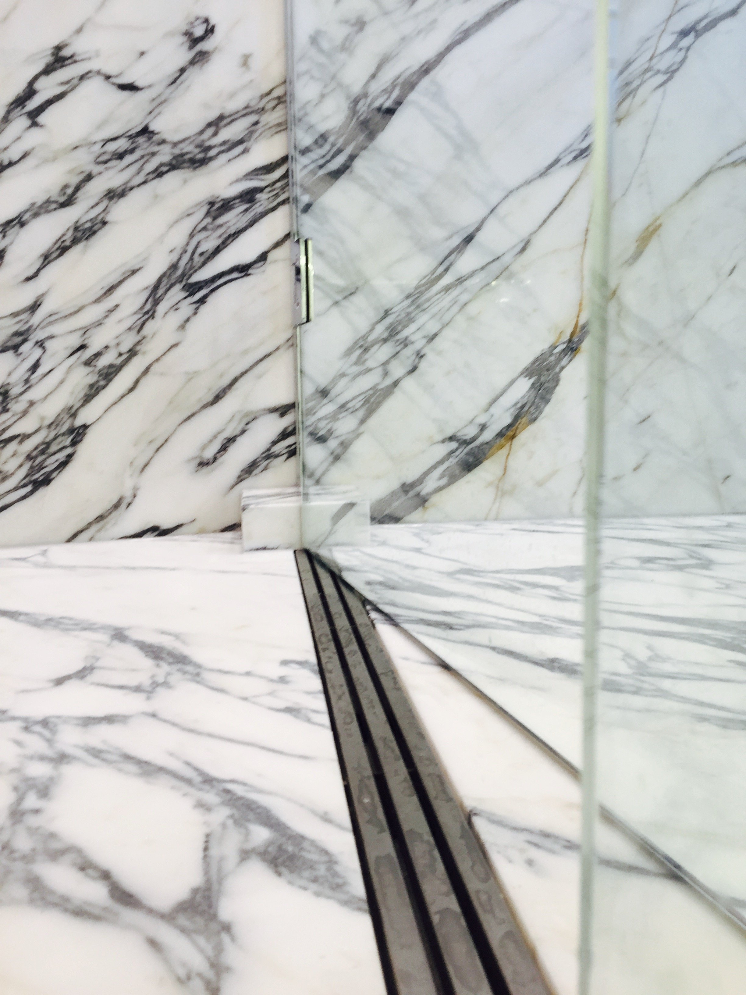 This slimline channel sitting at the threshold to the Shower zone, is to contain water overflow from the shower zone.  If a larger shower area has been designed with multiple showers – e.g. showers at either end, or an overhead dumper. This channel will work in support of a Wall Mounted Shower Channel.